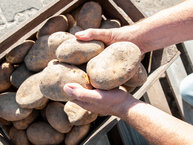 Ik ben Gert-Jan Grimme en verbouw al sinds het jaar 2000 Agria aardappels en uien op de kleigrond in Flevoland. De aardappels zijn uitermate geschikt om friet van te maken, maar ook voor stamppot of om te bakken. Kortom een echte allrounder.